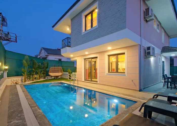 2 غرف نوم موفرة في Villa Efems التي تبعد اقل من 25 دقائق سيراً عن مدينة سلطانز للألعاب المائية. ايضاً توفر المسبح الخصوصي وكذلك بركة السباحة الخصوصية والحديقة.